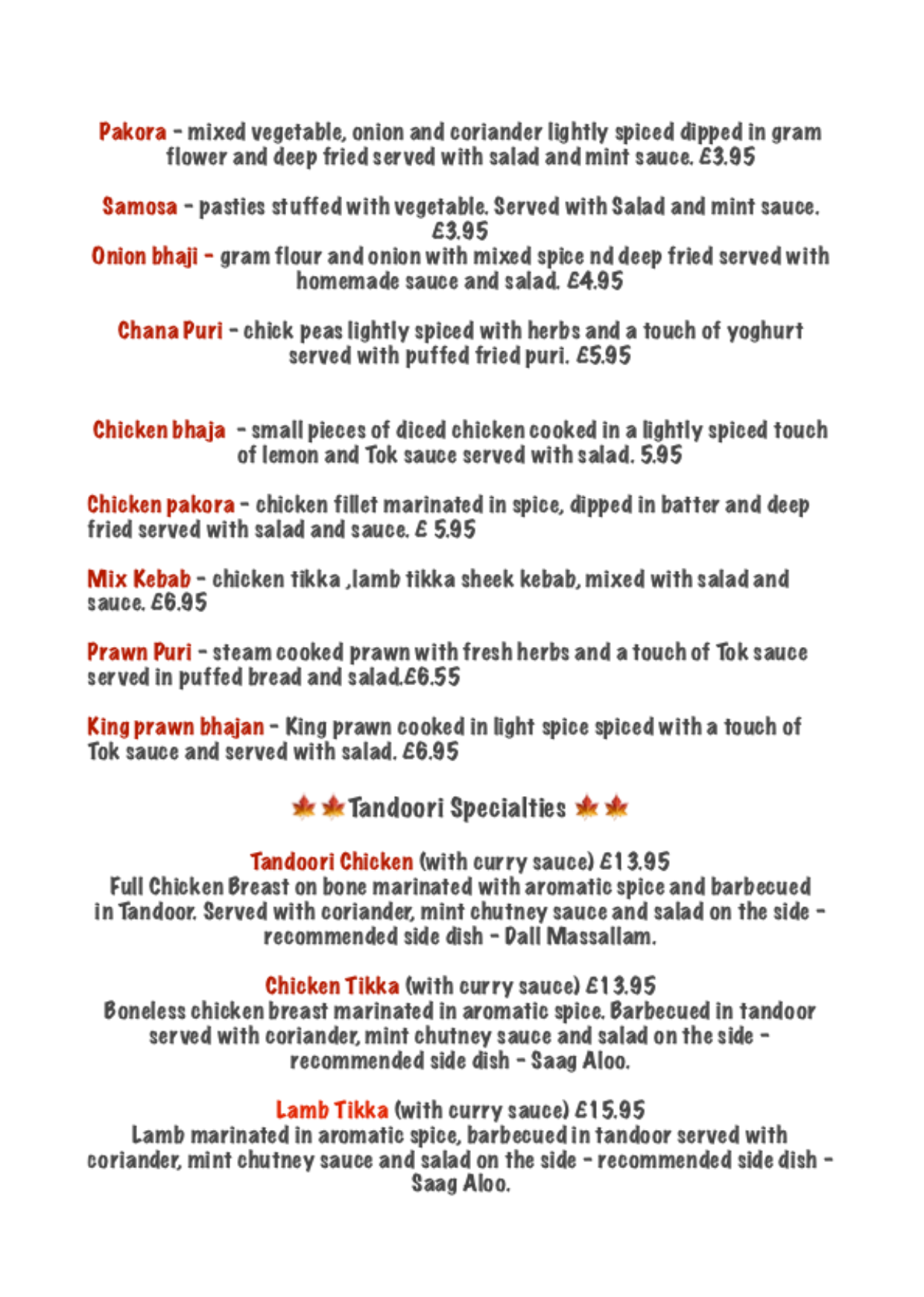 TAKEAWAY Menu