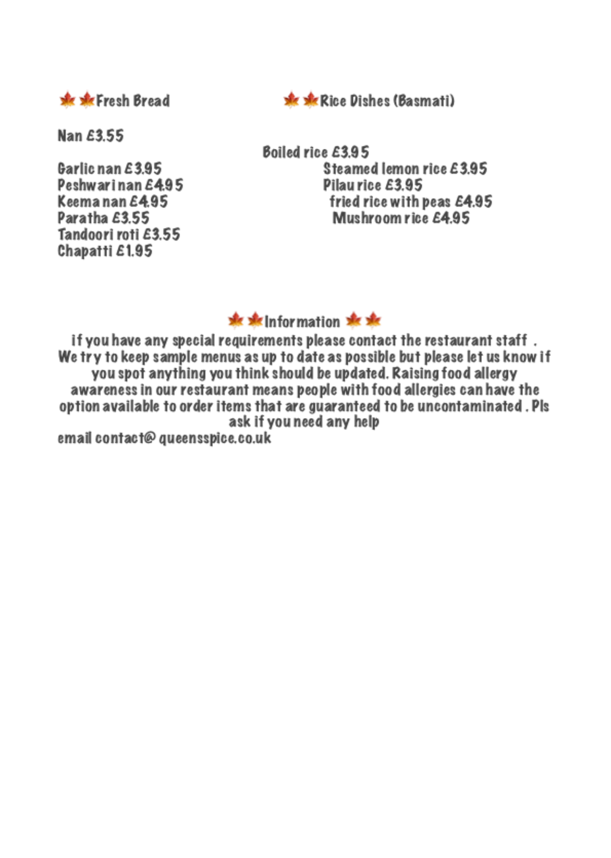 XMAS Menu